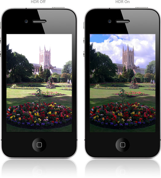 Nyní můžete pořizovat skvělé snímky, které zachycují širší rozsah intenzity světla pomocí nového vysokého dynamického rozsahu (HDR) nastavení. Po výběru HDR, jen bod iPhone 4 na fotografovaný objekt a střílet. iPhone 4 automaticky zachycuje tři fotografie scény - každý s různými úrovněmi expozice. Pak iPhone 4 vrstvy snímků dohromady, aby vytvořily jednu fotografii, která kombinuje nejlepší prvky z každého záběru a přesněji reprezentuje široké spektrum světla ve scéně. Oba pravidelně výstřel a fotografií HDR objeví ve fotoaparátu Roll.